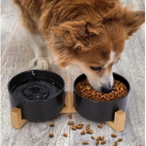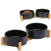 Zestaw dwóch ceramicznych misek, umieszczonych na stabilnej podstawie bambusowej. Dzięki dwóm oddzielnym pojemnikom możliwe jest jednoczesne podawanie jedzenia i wody. Ceramiczna miska została wykonana z najwyższej jakości materiałów, co gwarantuje trwałość i bezpieczeństwo dla zwierzęcia. Połączenie estetyki z funkcjonalnością sprawia, że miska nie tylko doskonale spełnia swoje zadanie, ale także prezentuje się elegancko w każdym wnętrzu. Solidna konstrukcja zapewnia trwałe wsparcie dla miski, eliminując ryzyko przewrócenia podczas jedzenia czy picia.