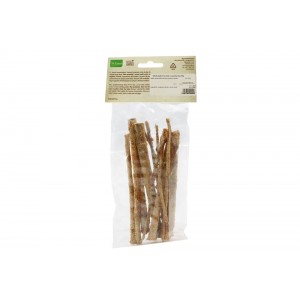 Pędy leszczyny to jeden z najbardziej polecanych, naturalnych gryzaków. Są bezpieczne, lekkostrawne i idealnie dopasowane do potrzeb zwierząt z ciągle rosnącymi zębami. Dzięki temu, że są to młode pędy, produkt jest delikatniejszy niż grube gałęzie, a jednocześnie wystarczająco trwały, by spełniać funkcję gryzaka. Naturalny zapach i struktura drewna sprawiają, że zwierzęta instynktownie po nie sięgają.