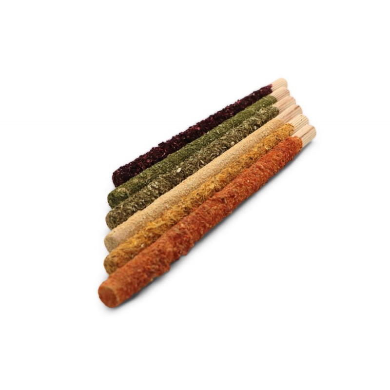 Zestaw zawiera 6 patyków z drewna bukowego, o różnych posypkach smakowych: