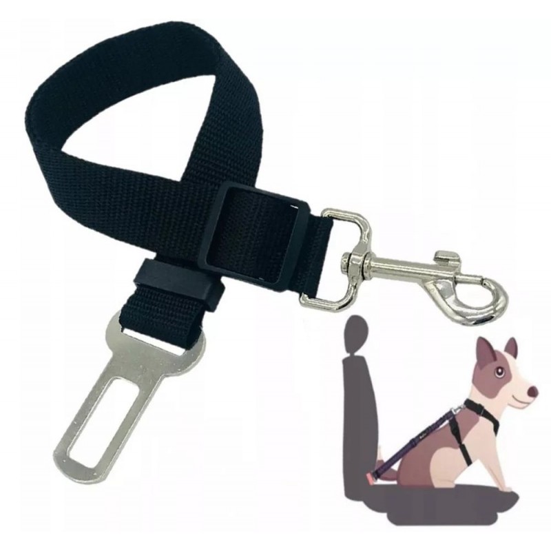 Smycz do samochodu służy jako pasy bezpieczeństwa dla psa, jest elastyczna, co dodatkowo amortyzuje nagłe szarpnięcia i zwiększa bezpieczeństwo zwierzęcia. Klamra, końcówka do pasów, umożliwia wpięcie do wszystkich systemów pasów bezpieczeństwa w samochodach, co powoduje, że przyrząd gwarantuje szerokie zastosowanie i gwarancję dopasowania bez różnicy na markę i model pojazdu. Dopasowanie do aktualnych potrzeb zapewnia system płynnego dostosowania długości, co daje psu pewien zakres swobody w przypadku większych aut bądź ogranicza ich przemieszczanie się. Montaż do obroży odbywa się przy pomocy zapięcia karabińczykiem, którą zaleca się przypiąć do szelek psa.